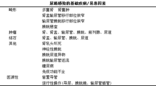 (1)尿路梗阻:i各种原因(畸形、i肿瘤、i结石、i异物等)引起的尿路梗阻是尿路感染的最易感因素,l合并尿路梗阻者尿路感染发生率是正常人的12倍。此外,l膀胱输尿管返流、i妊娠时增大子宫压迫和分泌增多的黄体酮抑制输尿管蠕动引起的尿流排泄不畅等也是引起的尿路梗阻的主要原因。