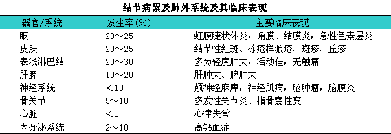 2.肺外结节病11结节病累及其他系统及其临床表现见下表。