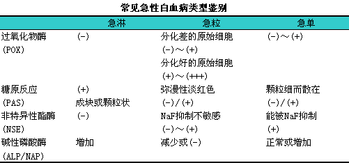 3.细胞化学11主要用于鉴别各类白血病细胞。常见白血病的细胞化学反应见下表。