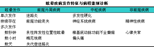 2.根据眩晕发作特征与病程鉴别(见下表)