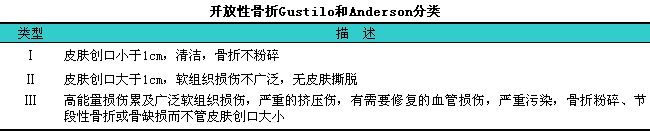 国际上也常用开放性骨折Gustilo和Anderson分类方法,l见下表。
