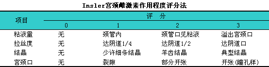 1)宫颈评分法:i根据宫颈粘液量、i拉丝度、i结晶及宫颈口开张程度评分;每项3分,l共12分,l见下表。