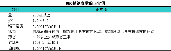 1)精液常规分析:i是男性不育的诊治的出发点。使用Makler计数盘,l可以准确计算出精子密度、i活动率、i运动轨迹和速度,l也可使用精子图像自动分析仪,l或使用白细胞计数器计数(见下表)。