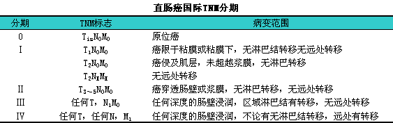 (2)中国分期:i我国结、i直肠癌协作组1985年制定了结、i直肠癌临床病理分期标准,l与Dukes分期基本相同。不同之处是将Dukes1A期以局限于粘膜下层、i浅肌层、i深肌层分为A1、iA2、iA3期,l将DukesC1、iC2期合并为C期。
