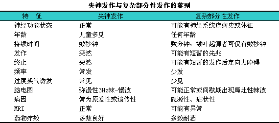临床表现分为4种类型:i①自动症(automatism),l意识障碍和患者出现看起来有目的、i但实际上没有目的的发作性行为异常是自动症的主要特征。部分患者发作前有感觉和运动先兆,l发作时患者与外界接触不良,l对外界刺激无反应。随后出现一些看起来有目的,l但实际上无目的的活动,l如反复咂嘴、i噘嘴、i咀嚼、i舔舌、i牙或吞咽(口、i消化道自动症)或反复搓手、i抚面,l不断地穿衣、i脱衣、i解衣扣、i摸索衣裳(手足自动症),l也可表现为游走、i奔跑、i无目的的开门、i关门、i乘车上船;还可出现自言自语、i叫喊、i唱歌(语言性自动症)或机械重复原来的动作。发作后患者意识模糊,l常有头昏,l不能回忆发作中的情况。②仅有意识障碍,l此时需与失神发作鉴别(下表)。③先有单纯部分性发作,l继之出现意识障碍。④先有单纯部分性发作,l后出现自动症。