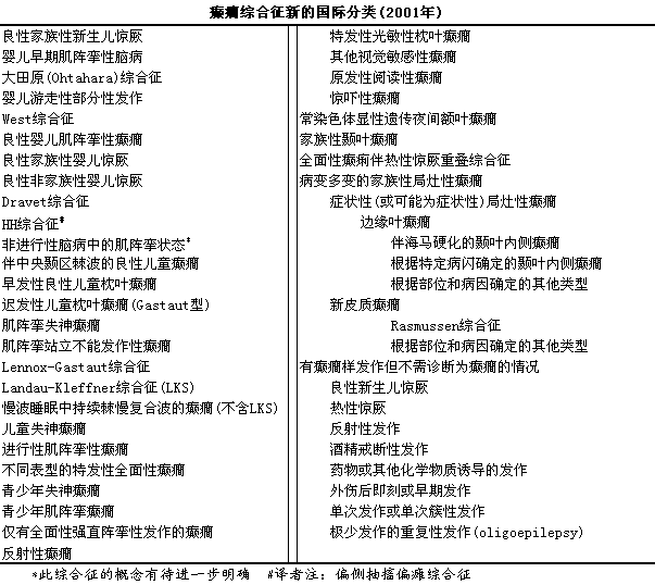 2001年国际抗癫癎联盟又提出了新的癫癎发作和癫癎综合征的分类(见附图1、i附表1)。各种不同的分类仅仅是人类认识和归纳疾病的不同方法,l其并没有改变癫癎发作或癫癎综合征的特征。