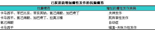 2)选药方法:i抗癫癎药物的选择依据癫癎发作和癫癎综合征的类型、i副作用大小、i药物来源、i价格等来决定。其中最主要的依据是癫癎发作和癫癎综合征类型。一般情况下可参考下表选药。选药不当,l不仅治疗无效,l而且可能加重癫癎的发作(下表)。癫癎综合征的选药可参考下表。常用抗癫癎药物的基本特征详见下表。由于抗癫癎药往往需要较长时间使用,l因而,l所选择的药物需有稳定的来源。