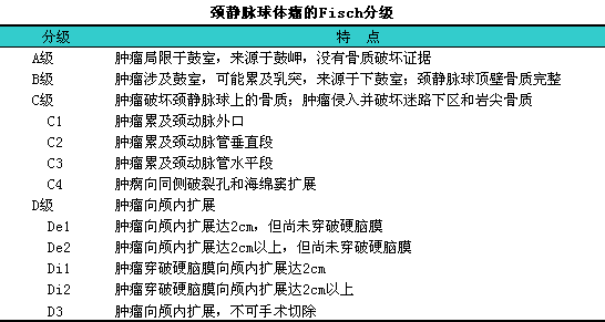 【临床分级】1颈静脉球体瘤的Fisch分级(见下表):i