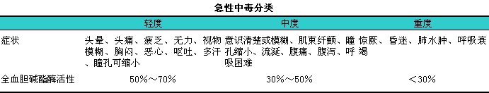 根据病情临床上将急性中毒分为轻、i中和重度(见下表)。