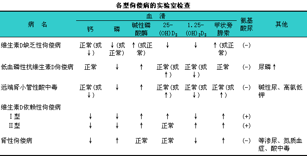 3.与其他病因所致的佝偻病的鉴别(下表)