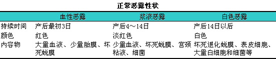 4.恶露11产后随子宫蜕膜脱落,l含有血液及坏死蜕膜等组织经阴道排出,l称为恶露(lochia)。根据其颜色及内容物分为血性恶露、i浆液性恶露、i白色恶露(下表)。正常恶露有血腥味,l但无臭味,l一般持续4~6周,l总量可达500ml。若有胎盘、i胎膜残留或感染,l可使恶露时间延长,l并有臭味。