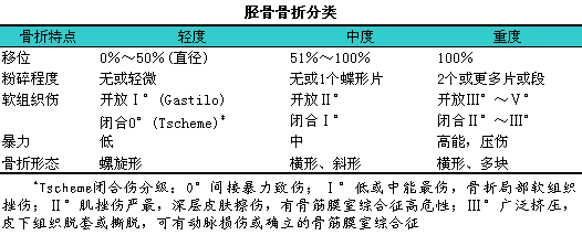 2.胫骨骨折分类11目前常用的为改良Ellis胫骨骨折分类,l见下表。