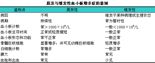 1.继发性血小板增多症11多继发于脾切除术后、i溶血性贫血、i急性失血后、i慢性或急性感染、i肿瘤性疾病等。详细鉴别见下表。