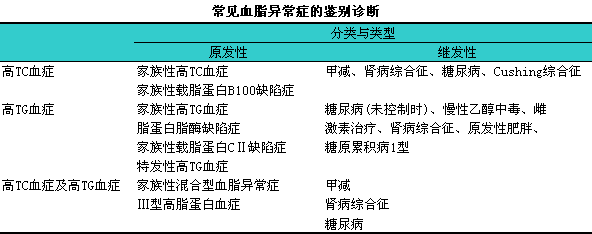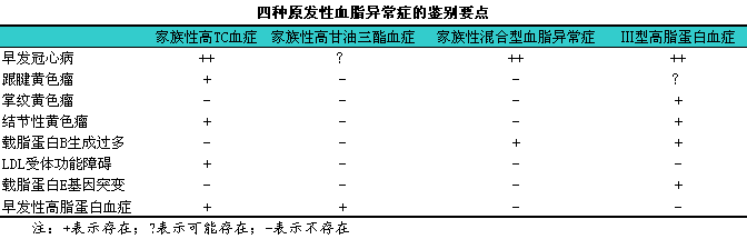 四种原发性血脂异常症及其与继发性血脂异常症的鉴别见下表。