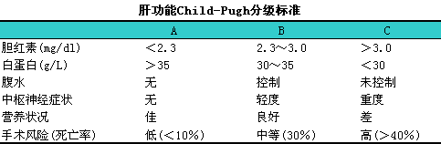 1.血液学检查1111脾功能亢进时,l白细胞、i血小板或红细胞数减少;肝炎后肝硬化病人,lHBV或HCV常为阳性;肝功能检验并进行分级(见下表),l可评价肝硬化的程度和肝储备功能。