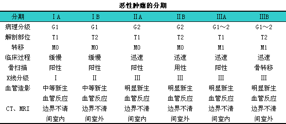 恶性肿瘤的分期见下表。