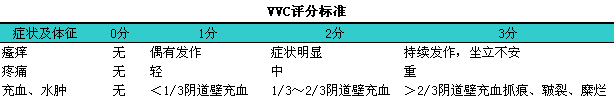 VVC分为单纯性VVC和复杂性VVC。单纯性VVC是指发生于正常非孕宿主的、i散发的、i油白色念珠菌引起的轻度VVC。复杂性VVC包括:i复发性VVC(RWC)、i重度VVC和妊娠期VVC、i非白色念珠菌所致的VVC或宿主为未控制的糖尿病、i免疫功能低下者。重度VVC是指临床症状严重,l外阴或阴道皮肤黏膜有破损,l按VVC评分标准(见下表),l评分≥7分者。RVVC是指妇女患VVC后,l经过治疗,l临床症状和体征消失,l真菌学检查阴性后,l又出现症状,l且真菌学检查阳性或1年内发作4次或以上者。