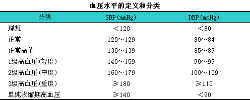 当患者的SBP和DBP进入不同的级别时,l应采用较高的级别;单纯收缩期高血压根据收缩压水平分级。