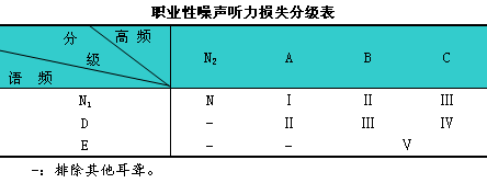 各频率听力损失均≤25dB,l按附录B的B1章判定听力损失在Ⅰ~Ⅳ区(级)。在Ⅰ~Ⅳ区(级)范围内者,l均属观察对象。而听力损失这Ⅴ级者,l再按附录B的B2章计算双耳平均听阈后,l尚无听力损伤者。