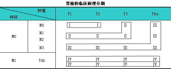 胃癌的临床病理分期:i由于胃癌位于腹腔内,l目前的临床检查难于在术前确定其肿瘤浸润程度及转移情况,l因此结合手术所见及术后病理检查予以分期。国际抗癌协会曾制定了胃癌的TNM分类法,l然而尚未被各国广泛采用,l国内目前也缺乏统一的分期方法。现将TNM分类法略加修改介绍于下,l以便逐步制定我国统一的分类、i分期标准。