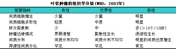3.组织分级:i一般认为良恶性区别(组织学分级见下表)。