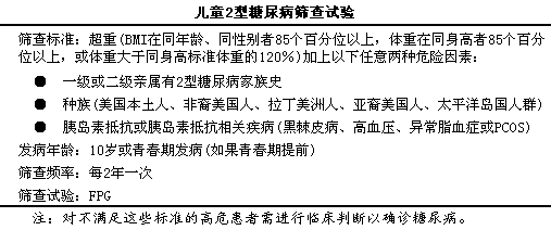 在过去的l0年间,l儿童和青少年2型糖尿病的发病率显著增加。其筛查试验标准见下表。