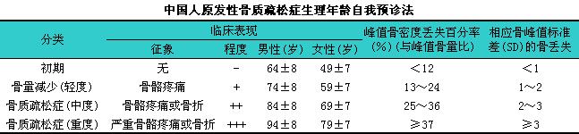(五)中国人原发性骨质疏松症按生理年龄自我参考预诊法