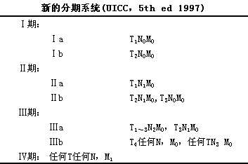 Mountain等于1997年发表了修订后的肺癌分期系统,l并为UICC所采用。如表3-46所示。