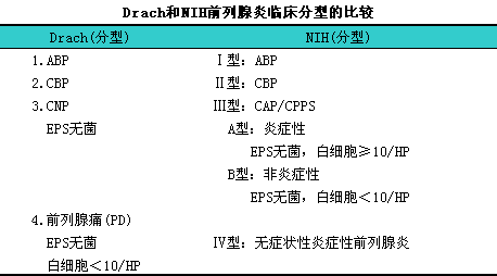 目前国际通用的是1978年Drach等的分类法,l近年来美国国立卫生研究院(NIH)对此法略加修改(1995),l也被采用,l由于第Ⅳ型系在查体时偶然发现,l极少主动就诊,l故不赘述。Drach与NIH的分型法比较见下表。