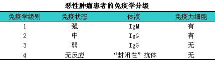 恶性肿瘤患者的免疫学分级见下表。