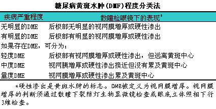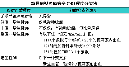 由美国眼科学会牵头于2003年2月通过新的DRP和DME的国际临床分级标准(见下表)。