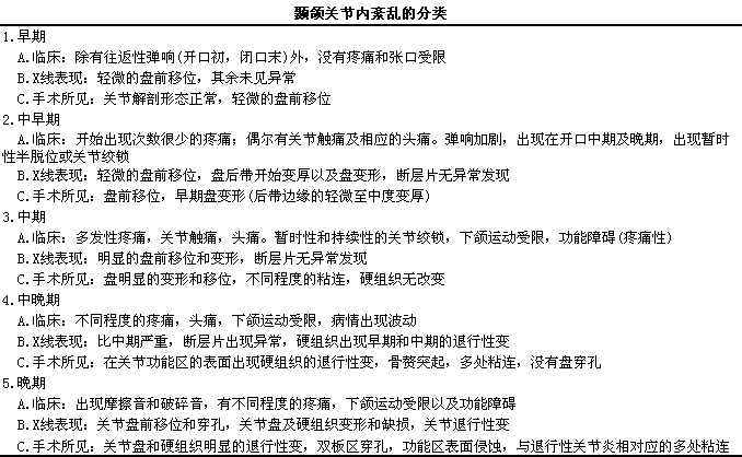 Wilkes根据临床、i影像、i手术、i解剖和病理观察将颞颌关节结构紊乱分为5个阶段(见下表)。
