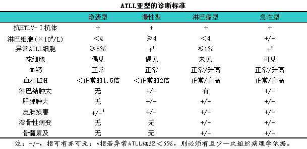 除淋巴瘤型外,l外周血必须有异常T细胞,l包括典型的ATLL细胞(亦称花细胞)以及细胞核有切迹的凹陷或分叶核、i小而成熟的T细胞(为慢性型和隐袭型的典型细胞)。