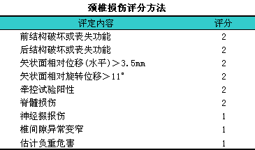 颈椎损伤根据骨与韧带损伤状况不同分为稳定型和不稳定型。对于严重的骨折或骨折脱位判断较为容易,l但对于某些不严重的损伤判断常有困难。目前,l主要根据White标准判断损伤的不稳定性:i①颈椎侧位X线片上,l损伤节段相邻两椎体间移位距离超过3.5mm。②相邻两椎体间成角大于11°。符合上述标准说明前或后韧带复合体有损伤,l提示为不稳。此外以下三点可作参考:i①相邻两棘突间距增宽。②颈椎生理弧度消失。③关节突间接触面丧失≥50%,l并往往丧失平行关系。
