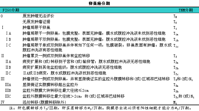 1.1分期原则11卵巢癌应该采用手术分期并有明确的组织学证据。肿瘤切除前的手术所以解决疾病的分期和预后。胸部X线检查可以发现胸膜转移。除非有症状,l否则不要求行其他影像学检查。血清CAl25对肿瘤分期没有帮助,l但可以观察肿瘤对化疗的反应。