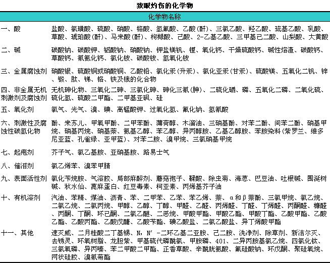 5.致眼灼伤化学物以酸、i碱为主,l也可见于其他各种化学物(见下表)。