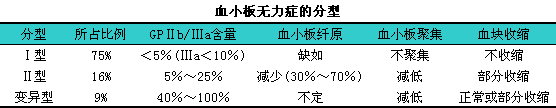 根据GPⅡb/Ⅲa量减少的程度或质的异常,l可分为3型(见下表)。
