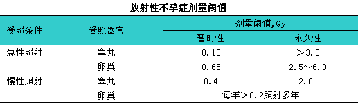 2.剂量阈值是电离辐射对性腺损伤的最低剂量值。如男性受到0.15Gy照射可引起暂时性不孕症,l并不是多数人都能引起不孕,l可能其中只有少数人有发病的可能性。本标准采取剂量阈值的目的就是为了不使有些人受到辐射损伤而得不到及时诊断和治疗。本标准提供的剂量阈值为导致放射性不孕症的参考剂量。