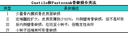 Gustilo和Pasternak分类(见下表、