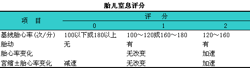 34.胎儿窒息评级11Pearson推荐“六点评分法”,l利用胎心率、i产力描记图(见下表)。