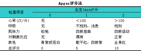 正常新生儿每项得2分,l共10分,l为全分;得6~7分者无需处理,l可自行好转;得4~5分以下者,l则需紧急处理,l随后仍可用此评分法,l估计处理效果。
