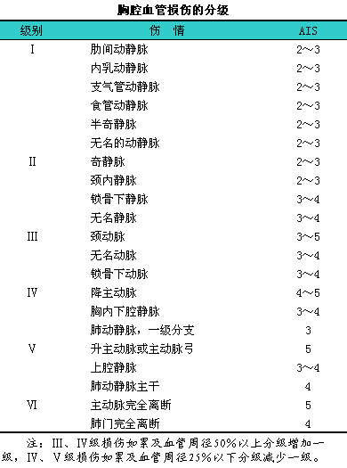 胸腔血管损伤的分级见下表。