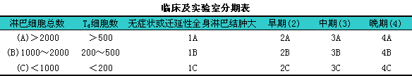 1990年WHO公布的HIV感染及艾滋病分期标准,l按预后将临床表现分为4期(见下表)。
