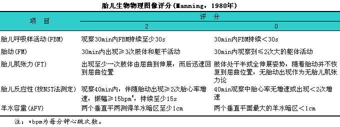 胎儿肌张力和羊水量5项指标的评分制(见下表)。
