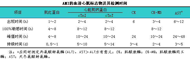 (2)血清心肌标志物的测定:iAMI诊断时常规采用的血清心肌标志物及其检测时间见下表。
