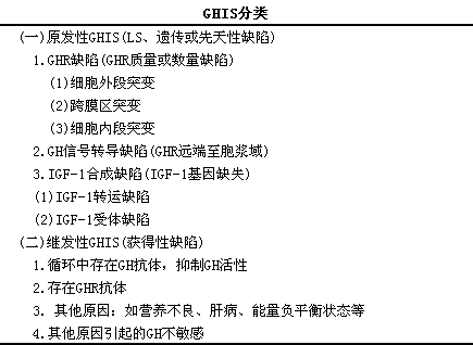 生长激素不敏感综合征(GHIS)又称生长激素抵抗综合征(GHRS),l是由于靶细胞对生长激素(GH)不敏感而引起的一种矮小症,lLaron综合征(LS)是其典型代表。