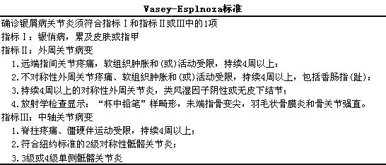该标准简化了Bennett标准,l去掉了滑液检查和滑膜活检,l这样只需要银屑病加上外周关节病变或脊柱关节病变两项即可临床诊断PA。相对而言,lVasey-Espinoza标准的敏感性更高,l可达99%。