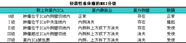 Knosp(1993)根据海绵窦受侵犯的程度,