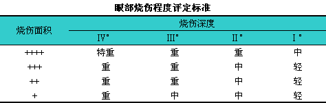 根据烧伤面积和烧伤深度:i将烧伤程度定为轻、i中、i重、i特重4级(见下表)。