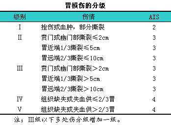 胃损伤的分级见下表。